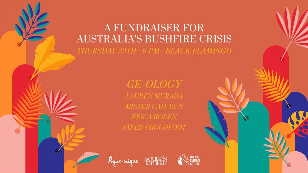 I organized and DJed a fundraiser for Australia’s bushfire crisis. The event raised $3700 AUD which was donated to Seed Mob, Australia’s first Indigenous youth climate network.